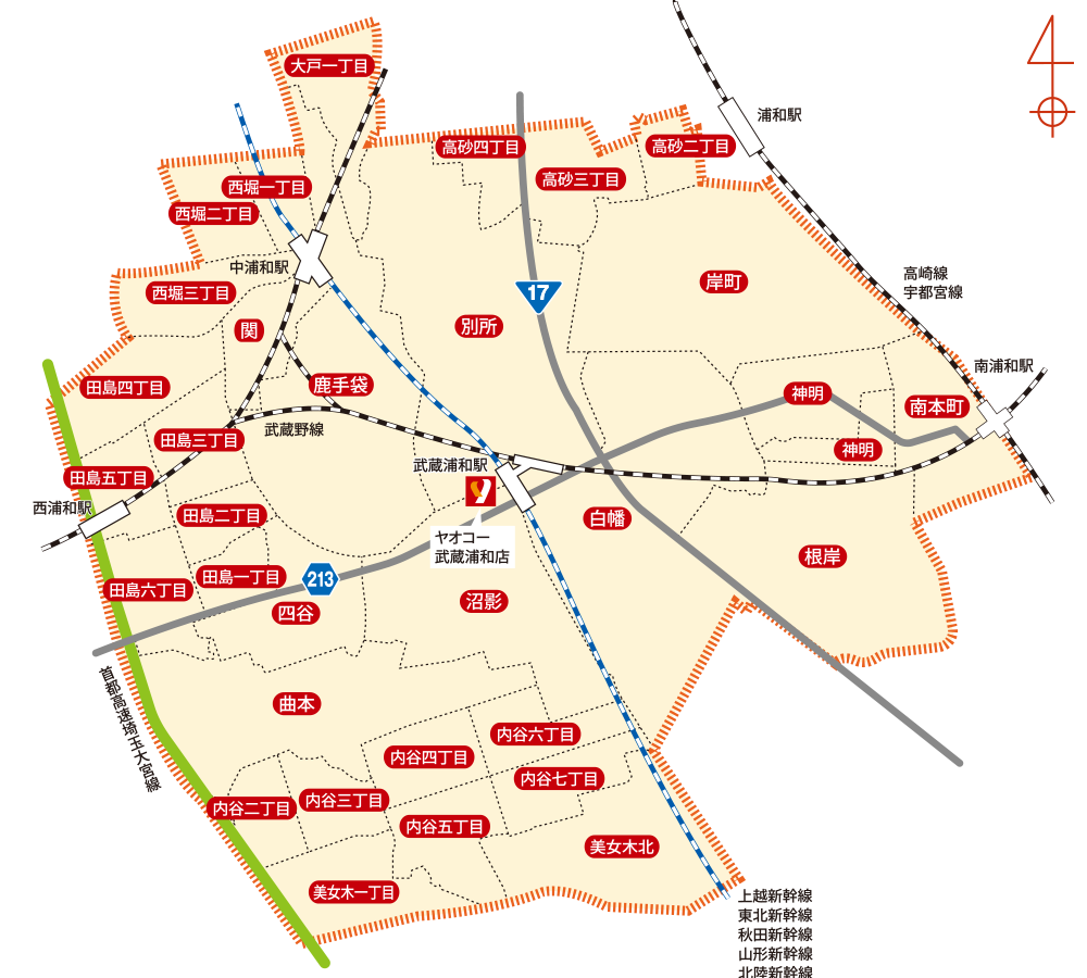 川口市 | 並木1丁目・4丁目(県道35号線より東側) 、並木元町(県道35号線より東側)、幸町 、栄町 、青木 、中青木 、西青木(県道35号線より東側)、上青木西、上青木 、南前川、朝日1丁目・2丁目・3丁目・4丁目 、安行領根岸(県道34号線より南側、県道332号線より東側)、西新井宿(県道161号線より南側、国道122号線より東側)、新井宿(県道161号線より南側、国道122号線より東側) 、芝中田(県道35号線より東側) 、赤山(県道161号線より南側、首都高速川口線より西側)、安行慈林(首都高速川口線より西側) 、安行吉岡(首都高速川口線より西側) 、桜町、鳩ケ谷本町 、坂下町 、里 、辻 、三ツ和 、赤井(首都高速川口線より西側) 、前田 、鳩ケ谷緑町 、南鳩ヶ谷 、八幡木(あずま橋通りより北側)、末広(あずま橋通りより北側、八間通りより北側) 、江戸 、東本郷1丁目・2丁目 |